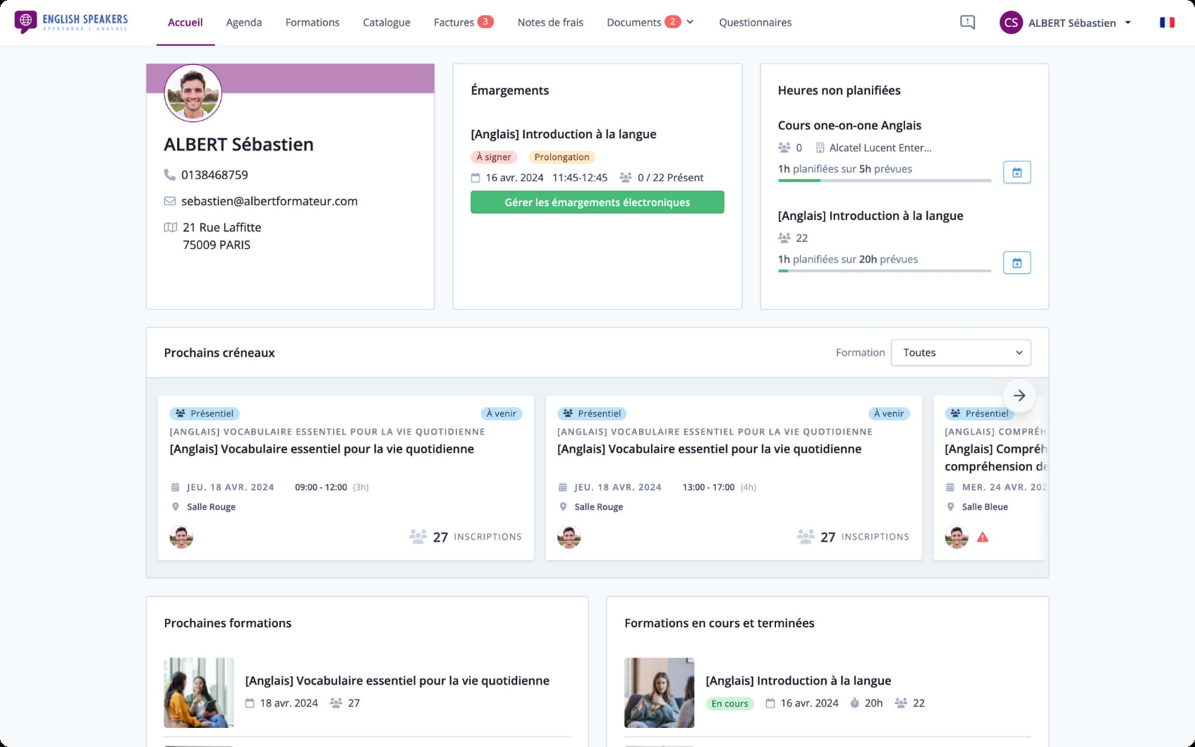 CRM, gestion administrative, facturation, Qualiopi, e-learning, émargement et bien plus, dans une seule plateforme SaaS.